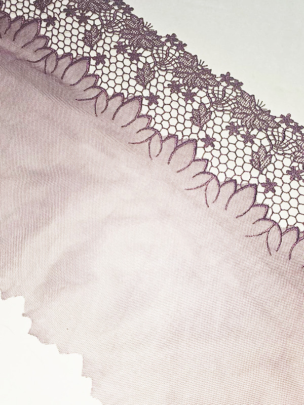 This unilateral lace has a deep purple embroidery over a soft but strong mesh. Please note that the laces have joins throughout the rolls, so if ordering larger quantities, you may have a join/s. Laces are non returnable as they are specifically cut for your order.