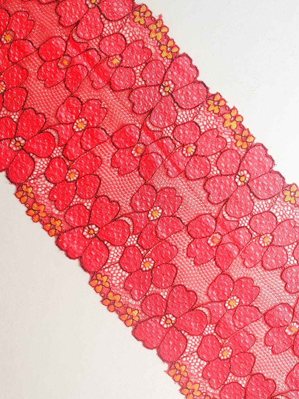 This lace offers a firm stretch with a stunning vibrant corded lace pattern. Laces are sold by the metre unless stated otherwise. Kindly note that the laces have joins throughout the rolls, so if ordering larger quantites, you may have a join/s. Laces are non returnable as they are specifically cut for your order.
