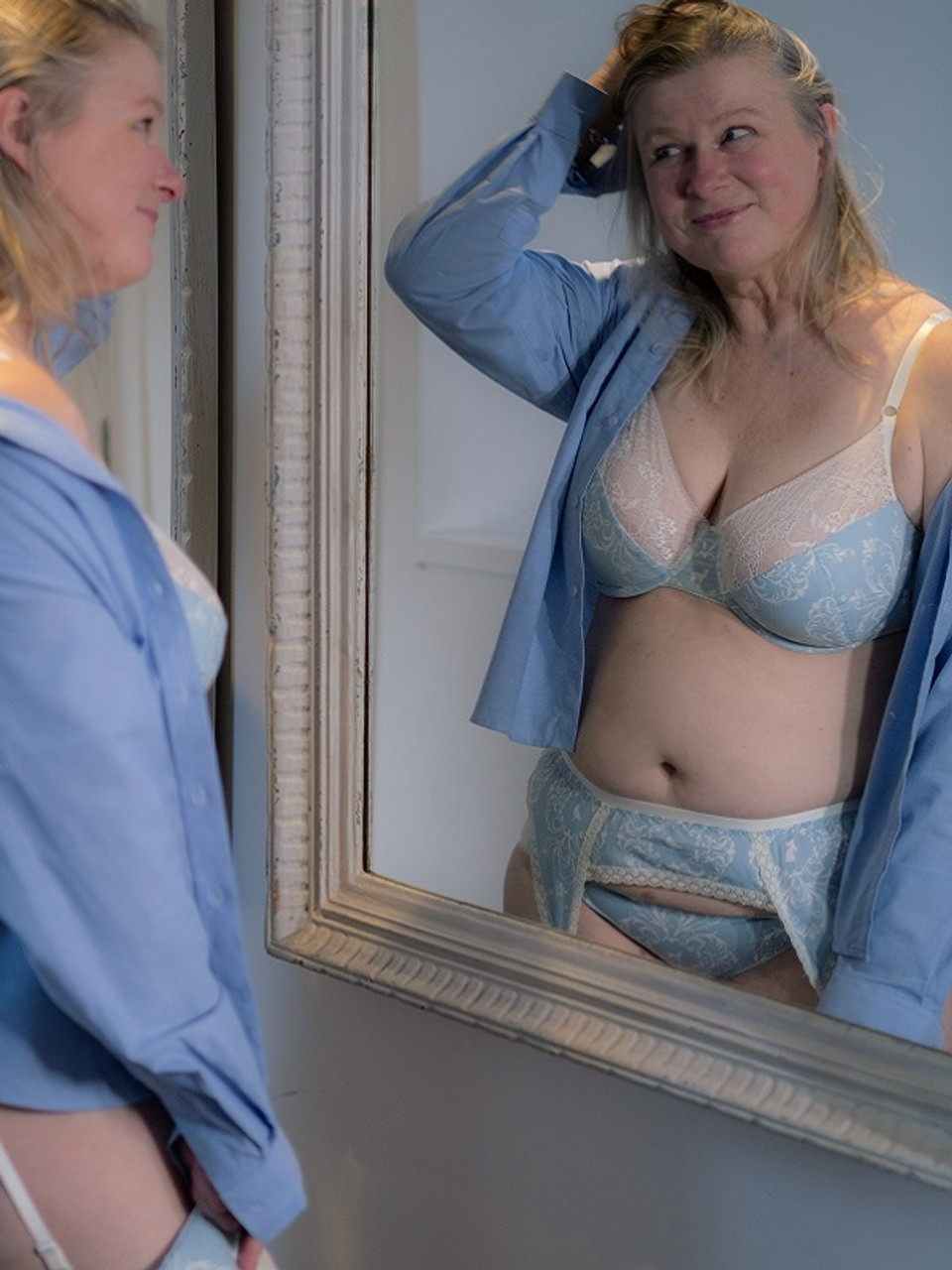 Frameless means that there is no underbust band and the cups and back of the bra meet only at the side. Due to this fabulous bra engineering, the BOO2 is a fabulous front opening bra when needed, simply replace the centre front with the connectore of your choice, staying within the pattern centre front width. You can also make a Tricot and lace option with Powernet back if desired. This pattern suits Booby Traps All Lace kits.