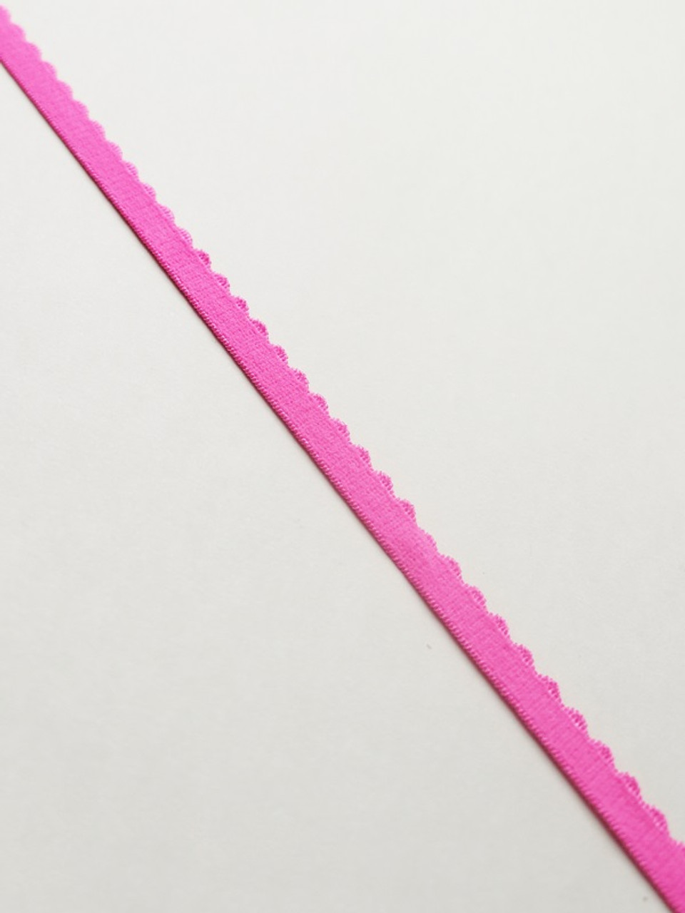 A facing elastic is a lingerie elastic with a fancy edge. It may be scallop, picot, piping, loop or another kind of edge trim. This elastic is used commonly in bra and knickers construction to provide grip and support. The little fancy edge is designed to be the only part showing from the outside. Elastics are non-returnable as they are cut for your order. Very rarely, there may be a join in the elastic if it is over 10m. Bulk orders may have a wait time of 6-8 weeks.
