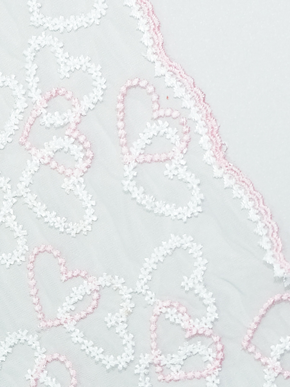 This lace is so gorgeous. It has a stunning pink and white embroidered heart design over a sheer white mesh. It is a supportive and wide option, perfect for bra, lingerie and camisole making. Laces are sold by the metre unless stated otherwise. Kindly note that the laces have joins throughout the rolls, so if ordering larger quantites, you may have a join/s. Laces are non returnable as they are specifically cut for your order.