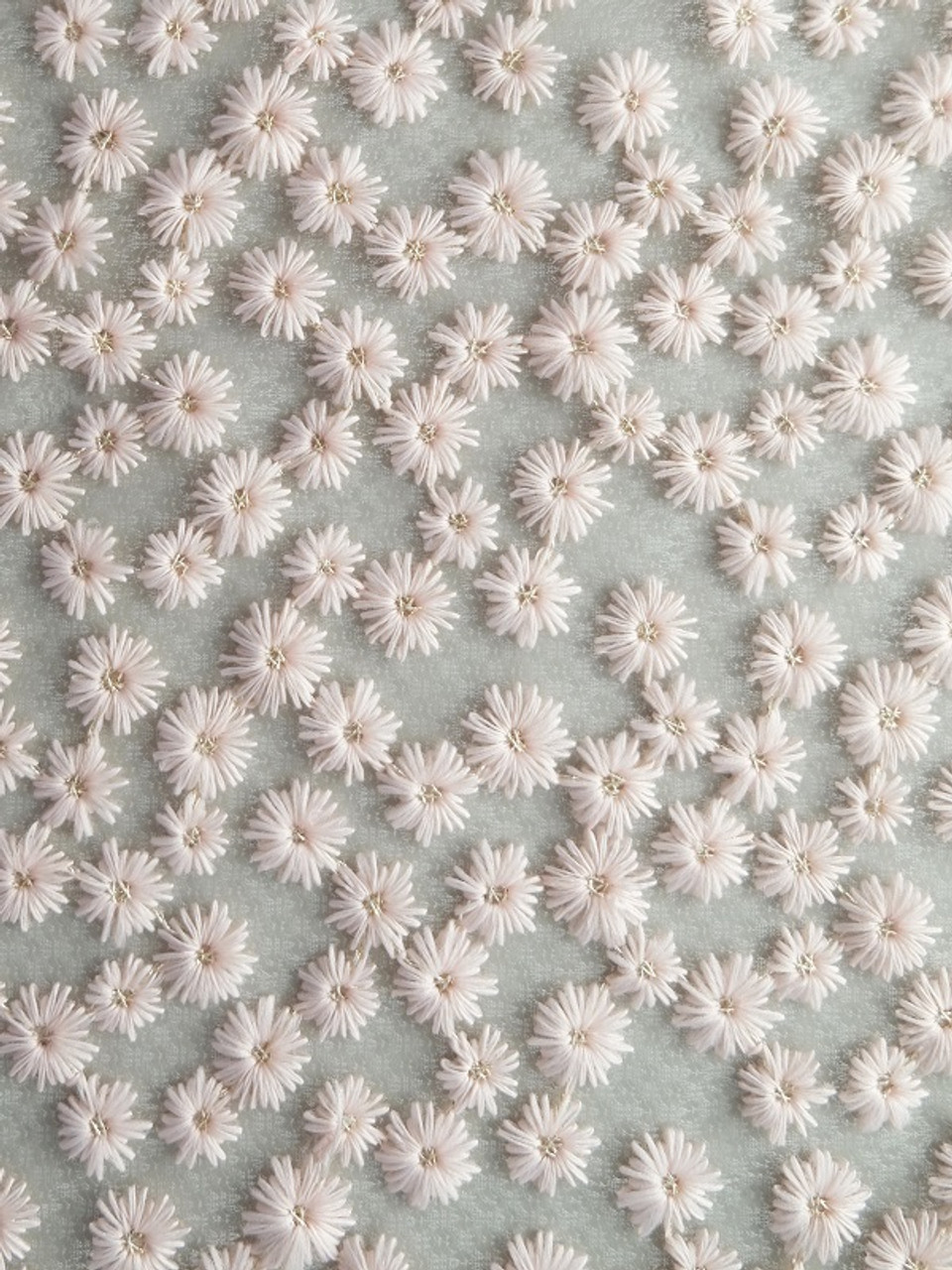 Stunning heavily embroidered daisies over spiderweb tulle with sparkly centres (hard to capture on camera). This is a heavweight option and would suit bustiers or corsets or dress bodices that require more structure. Sold by the metre.
