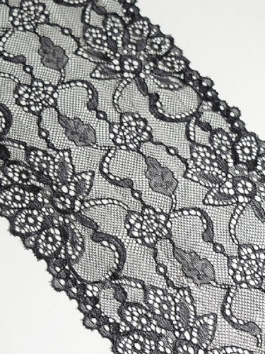This lace is a lightweight stretch, double scallop edge lace. Laces are sold by the metre unless stated otherwise. Kindly note that the laces have joins throughout the rolls, so if ordering larger quantites, you may have a join/s. Laces are non returnable as they are specifically cut for your order.