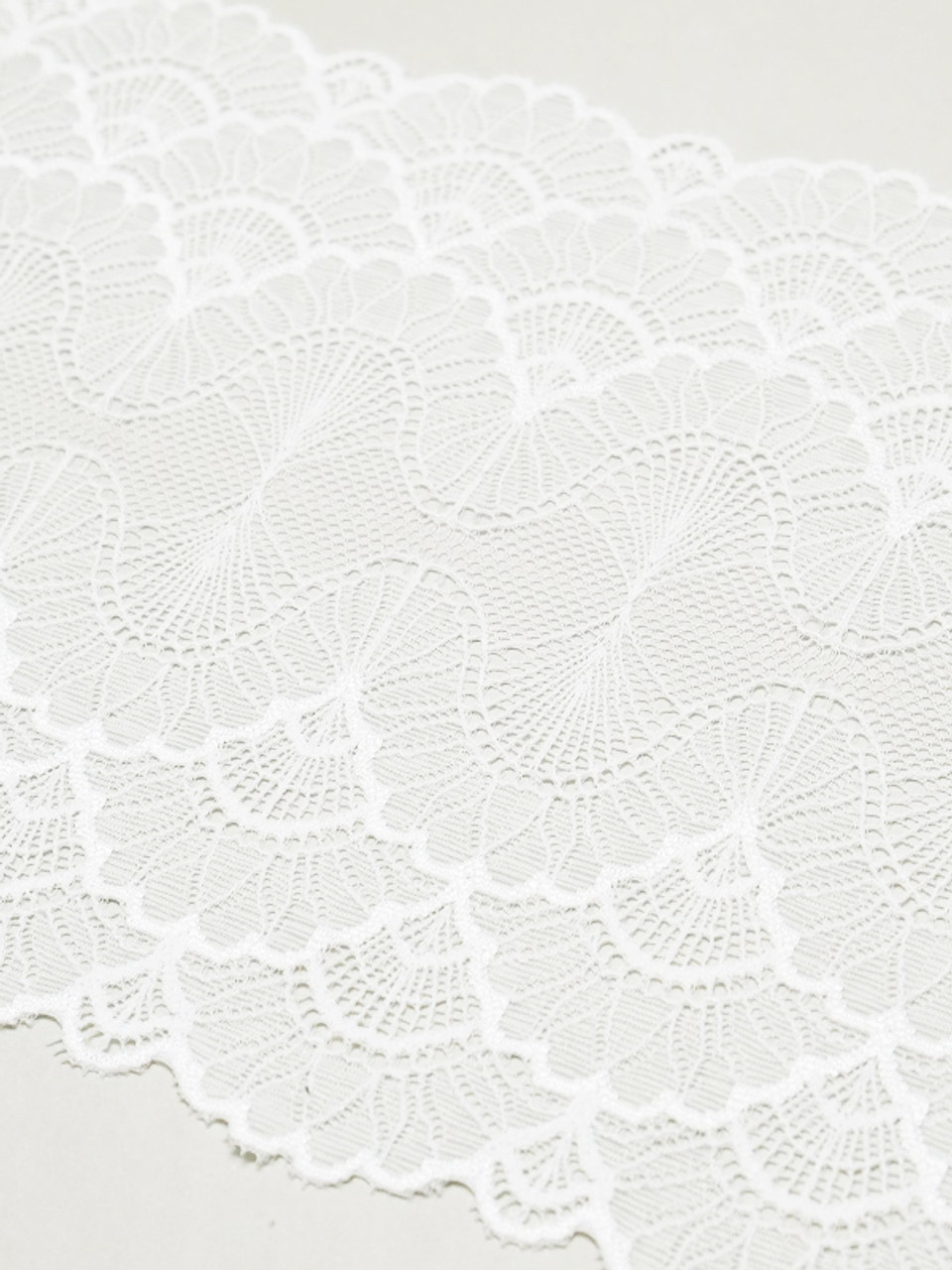 This lace is a light-medium weight stretch lace with a stunning and unique pattern. Laces are sold by the metre unless stated otherwise. Kindly note that the laces have joins throughout the rolls, so if ordering larger quantites, you may have a join/s. Laces are non returnable as they are specifically cut for your order.