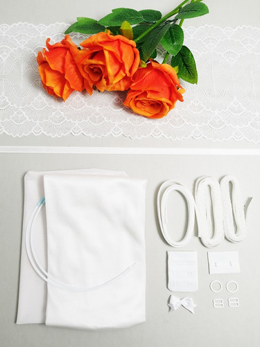 The lace provided is for the upper cups and centre front, so if you would like to make an all lace option, simply add more lace to your order using the dropdown menu. You can customise the kit to suit your taste. Powernet and cotton lining colours are limited, but cup fabric and add kits can be colour changed. Roses are for display purposes only.