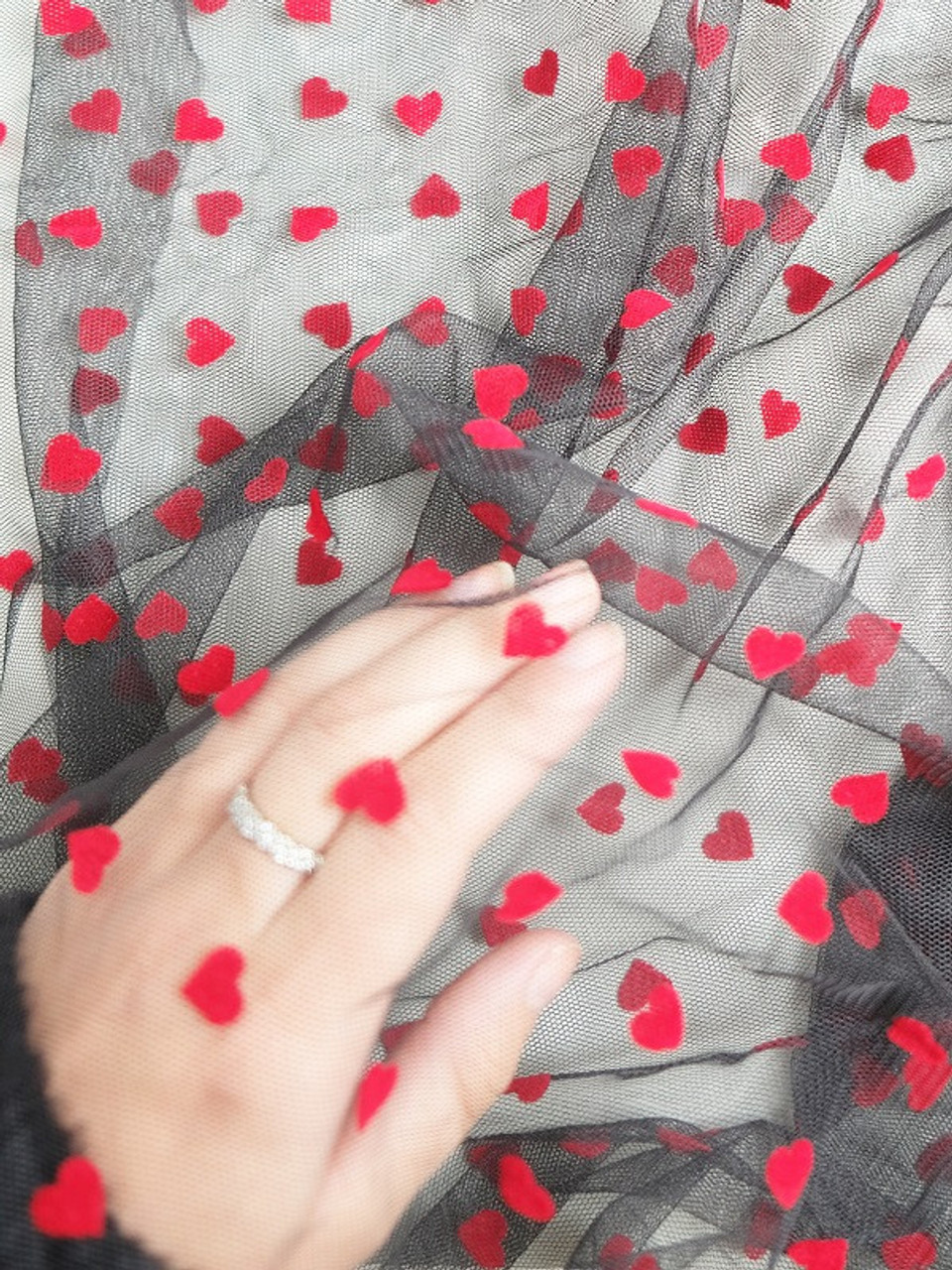 Heart Bra Mesh Black & Red