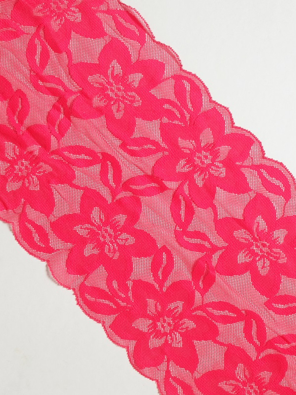 This bilateral lace has a bold lace design in a vibrant red and is medium-firm in stretch. This is an extremely wide lace and is suitable for most patterns. Laces are sold by the metre unless stated otherwise. Kindly note that the laces have joins throughout the rolls, so if ordering larger quantites, you may have a join/s. Laces are non returnable as they are specifically cut for your order.