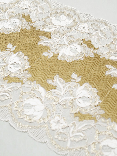 This lace is a firm and wide stretch lace with a stunning floral design. Laces are sold by the metre unless stated otherwise. Kindly note that the laces have joins throughout the rolls, so if ordering larger quantites, you may have a join/s. Laces are non returnable as they are specifically cut for your order.