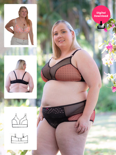 This comfy bralette is not only fun and quick to make, but feels amazing to wear. Suits young teens as a transition to wired option, and fans of the 'wirefree' kind of lingerie! More info provided on launch.