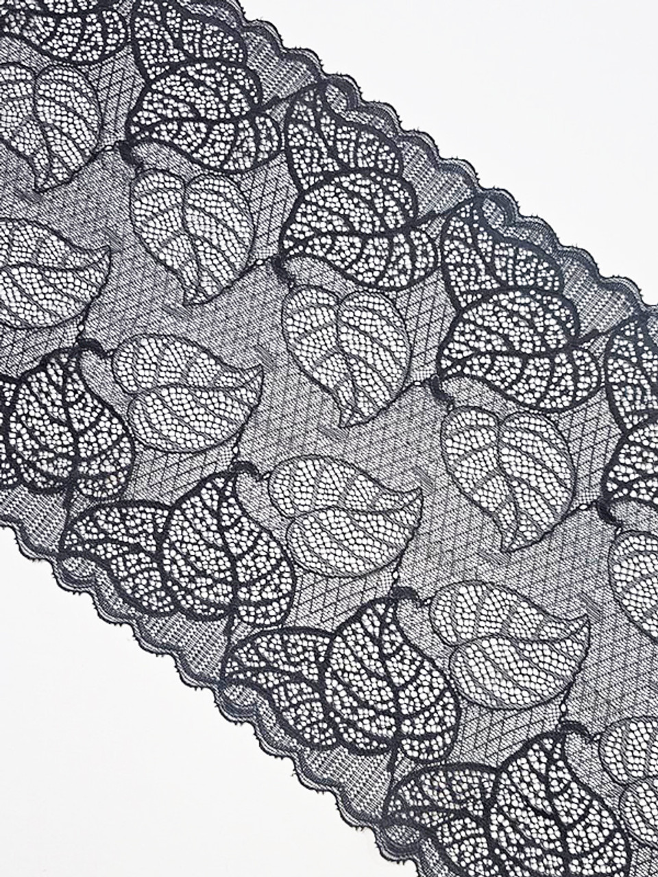 This stunning lace has a leaf pattern and a soft stretch with two pretty scallop edges. This lace is useful for many different projects, such as knickers, bras, bustiers, slips, camisoles, teddies. Laces are sold by the metre unless stated otherwise. Kindly note that the laces have joins throughout the rolls, so if ordering larger quantites, you may have a join/s. Laces are non returnable as they are specifically cut for your order.