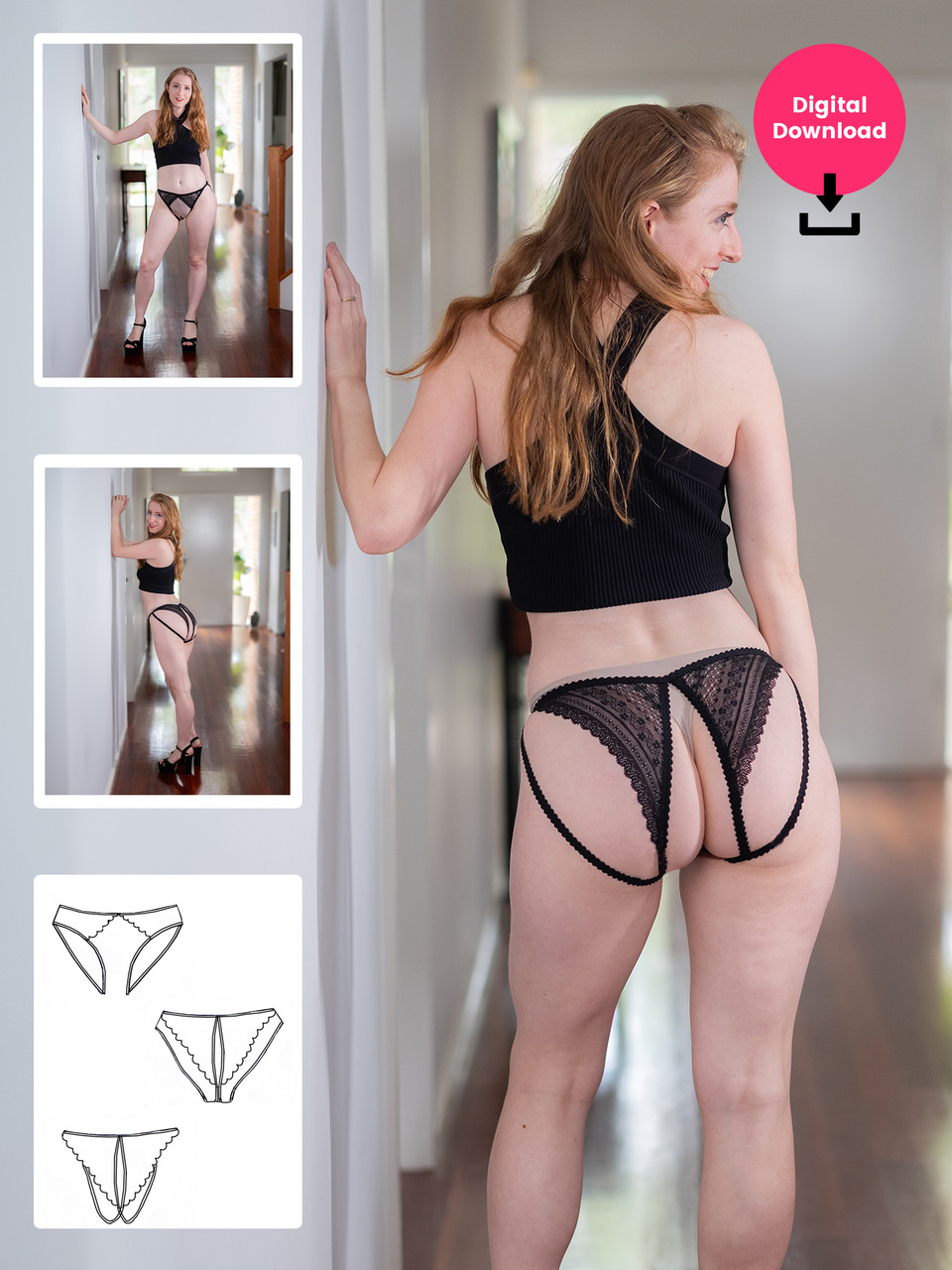 The Lexi panties are primarily a crotches style but there are two other options that use a full gusset or string gusset for hygiene purposes. Designed for stretch scallop edge laces and folding elastic, these knickers are fun to make and dont require much effort.