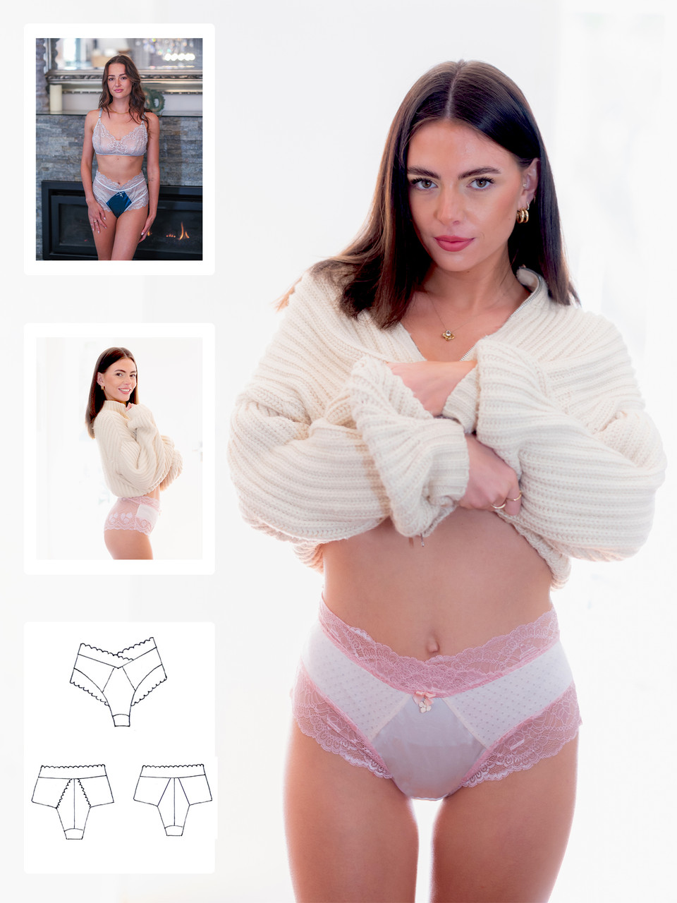 The Mia is included in our fabulous High Society Pattern Collection. These patterns are sold in a large collection where they can be interchanged with other styles to make even more styles or it can be bought independently here and assembled on its own. These briefs make a few different styles.