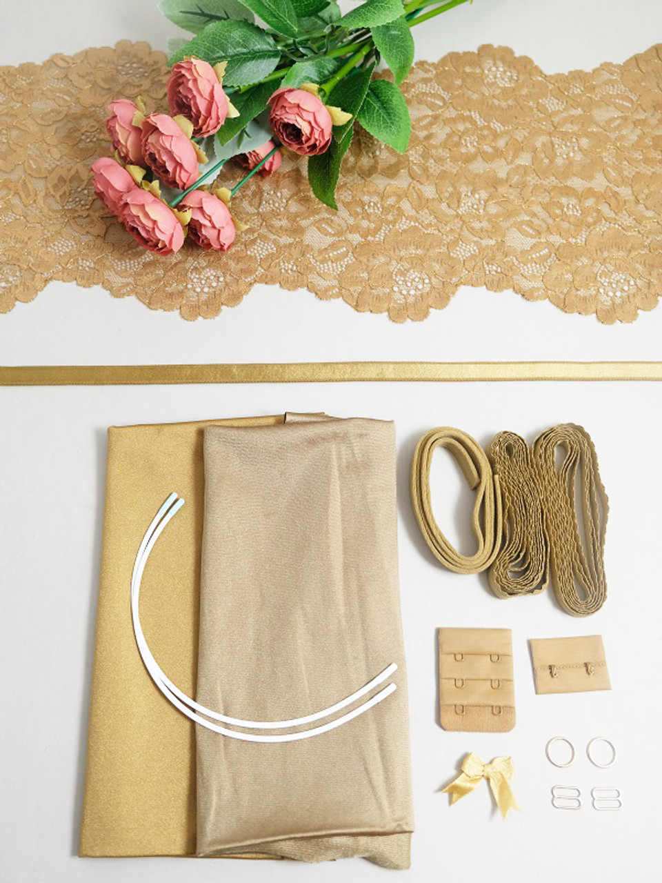 The lace provided is for the upper cups and centre front, so if you would like to make an all lace option, simply add more lace to your order using the dropdown menu. You can customise the kit to suit your taste. Powernet and cotton lining colours are limited, but cup fabric and add kits can be colour changed. Roses are for display purposes only.