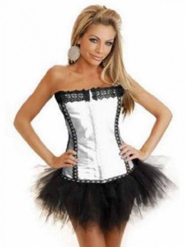 Outerwear Corset white satin with black lace