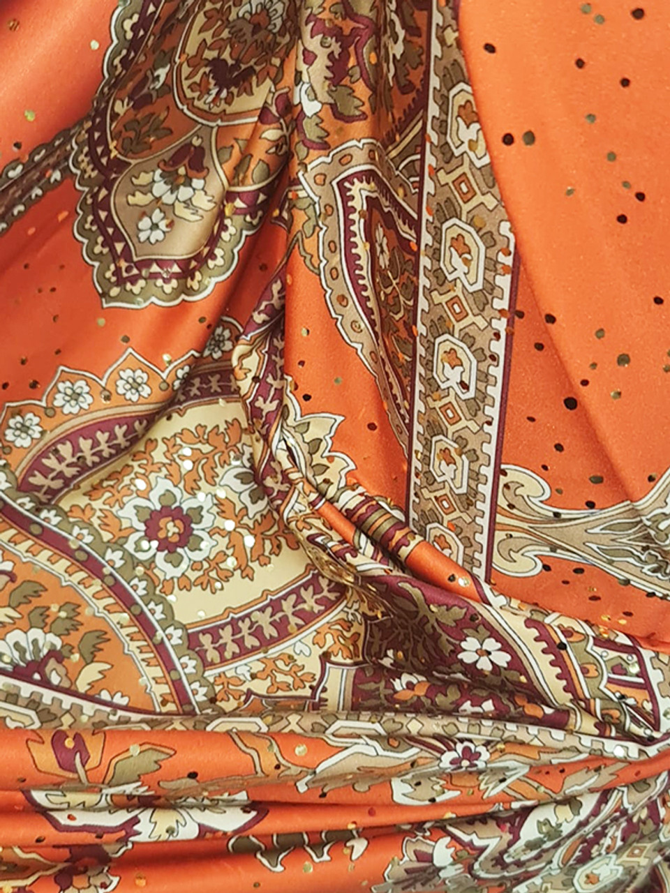 Designer Polyamide Lycra with mirror reflective foil dots. This Lycra is perfect for knickers, slips, bralettes, camisoles and pajamas. Sold by the metre and only available while stock lasts.