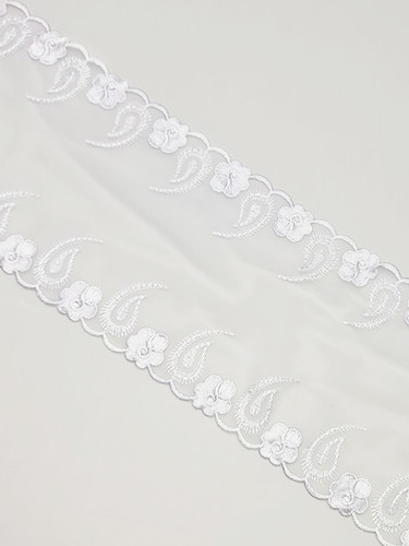 This lace is a beautiful Italian mesh lace. Although it looks white in the picture, it is a very pale purple tone on the embroidery. Laces are sold by the metre unless stated otherwise. Kindly note that the laces have joins throughout the rolls, so if ordering larger quantites, you may have a join/s. Laces are non returnable as they are specifically cut for your order.