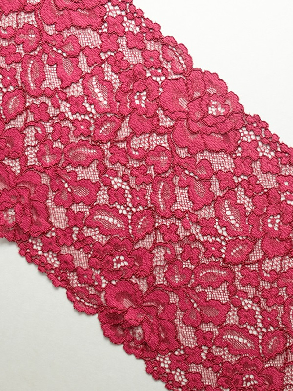 This lace is a beautiful rich red corded bra lace. Laces are sold by the metre unless stated otherwise. Kindly note that the laces have joins throughout the rolls, so if ordering larger quantites, you may have a join/s. Laces are non returnable as they are specifically cut for your order.