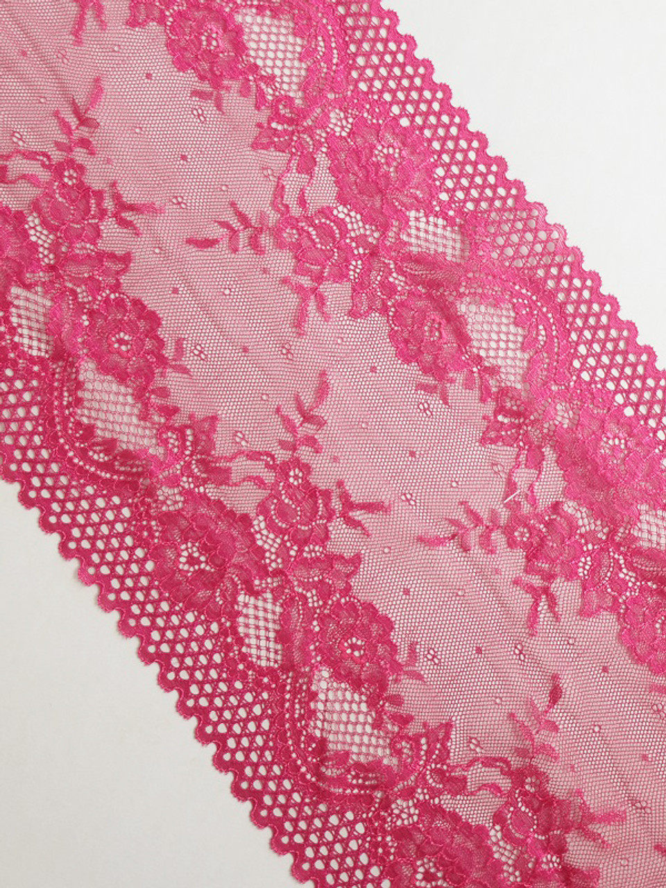 This lace is a medium stretch lace in a vibrant scarlet red floral lace design with bilateral edges. It is nice and wide and is suitable for most patterns due to its width. Laces are sold by the metre unless stated otherwise. Kindly note that the laces have joins throughout the rolls, so if ordering larger quantites, you may have a join/s. Laces are non returnable as they are specifically cut for your order.