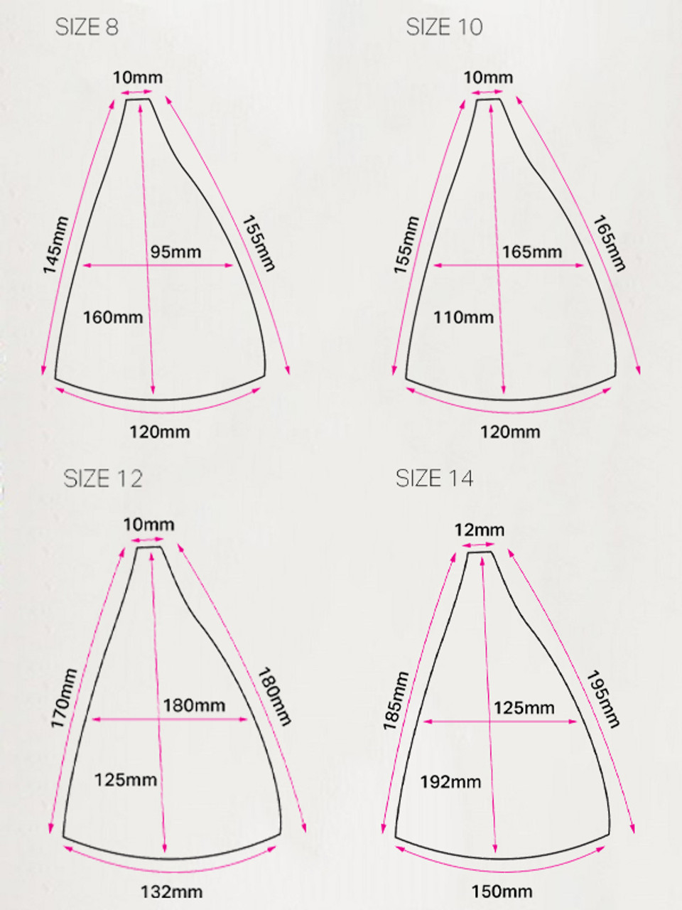 All these cups are a B cup, as this is the only size made. That means if you are bigger than a B cup you will need to increase the cup size using a cross-grading rule. Please see the image attached to find your size. This fit is a guide only as everyone has different bust shapes and fit preferences.