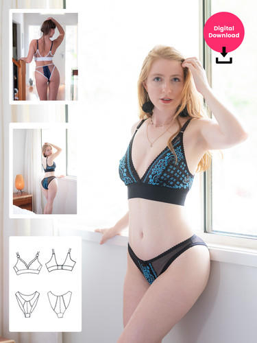 The Sienna bralette is a lace and mesh construction that creates a simple and comfortable lingerie piece to add to your collection. The knickers are a high cut lacey style. More info provided on launch.