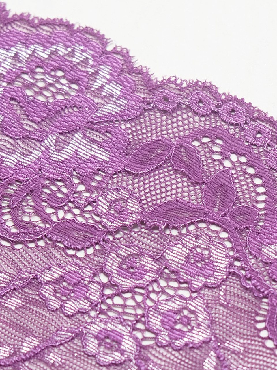 This lace is a firm stretch, double scallop edge lace with a silver lurex design woven throughout. Laces are sold by the metre unless stated otherwise. Kindly note that the laces have joins throughout the rolls, so if ordering larger quantites, you may have a join/s. Laces are non returnable as they are specifically cut for your order.