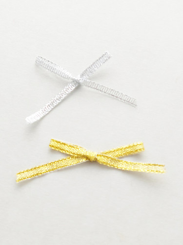 Bra bows are a charming finishing touch to knickers, bras and other lingerie items. These little bows are a sparkly gold and silver, and are widely used across craft projects such as scrapbooking and card making. Sold individually.