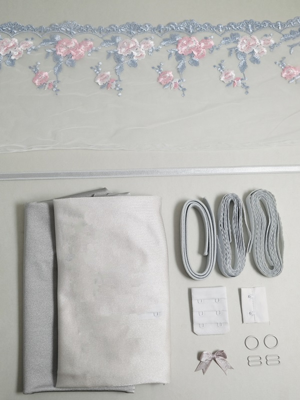 The lace provided is for the upper cups and centre front, so if you would like to make an all lace option, simply add more lace to your order using the dropdown menu. You can customise the kit to suit your taste. Powernet and cotton lining colours are limited, but cup fabric and add kits can be colour changed. Roses are for display purposes only.