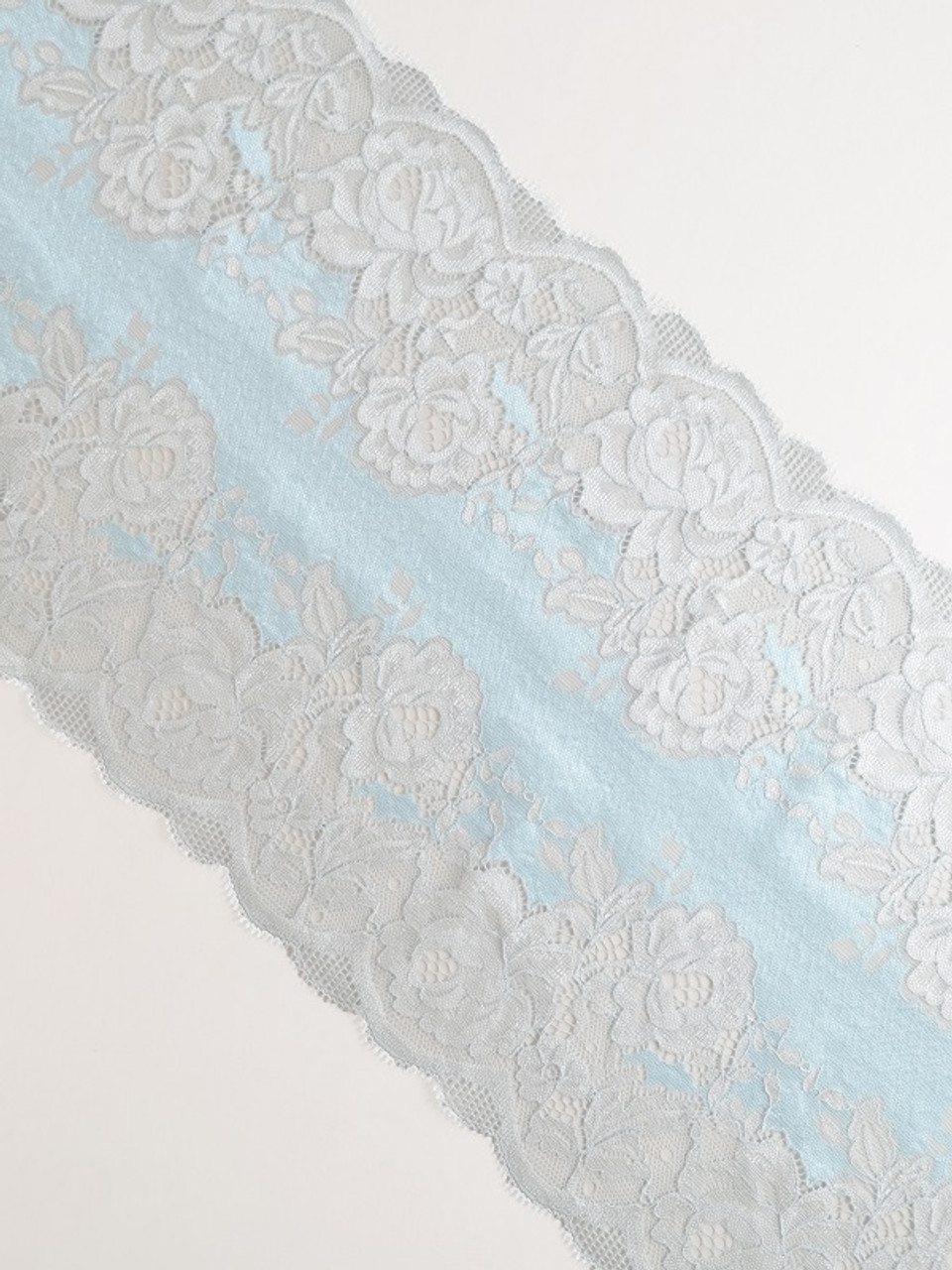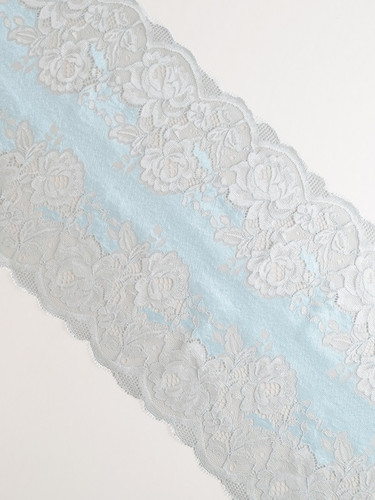 This bilateral lace has a classy blue and smokey/blue design with a lovely firm stretch. It is nice and wide, so will work across many sewing patterns. Laces are sold by the metre unless stated otherwise. Kindly note that the laces have joins throughout the rolls, so if ordering larger quantites, you may have a join/s. Laces are non returnable as they are specifically cut for your order.