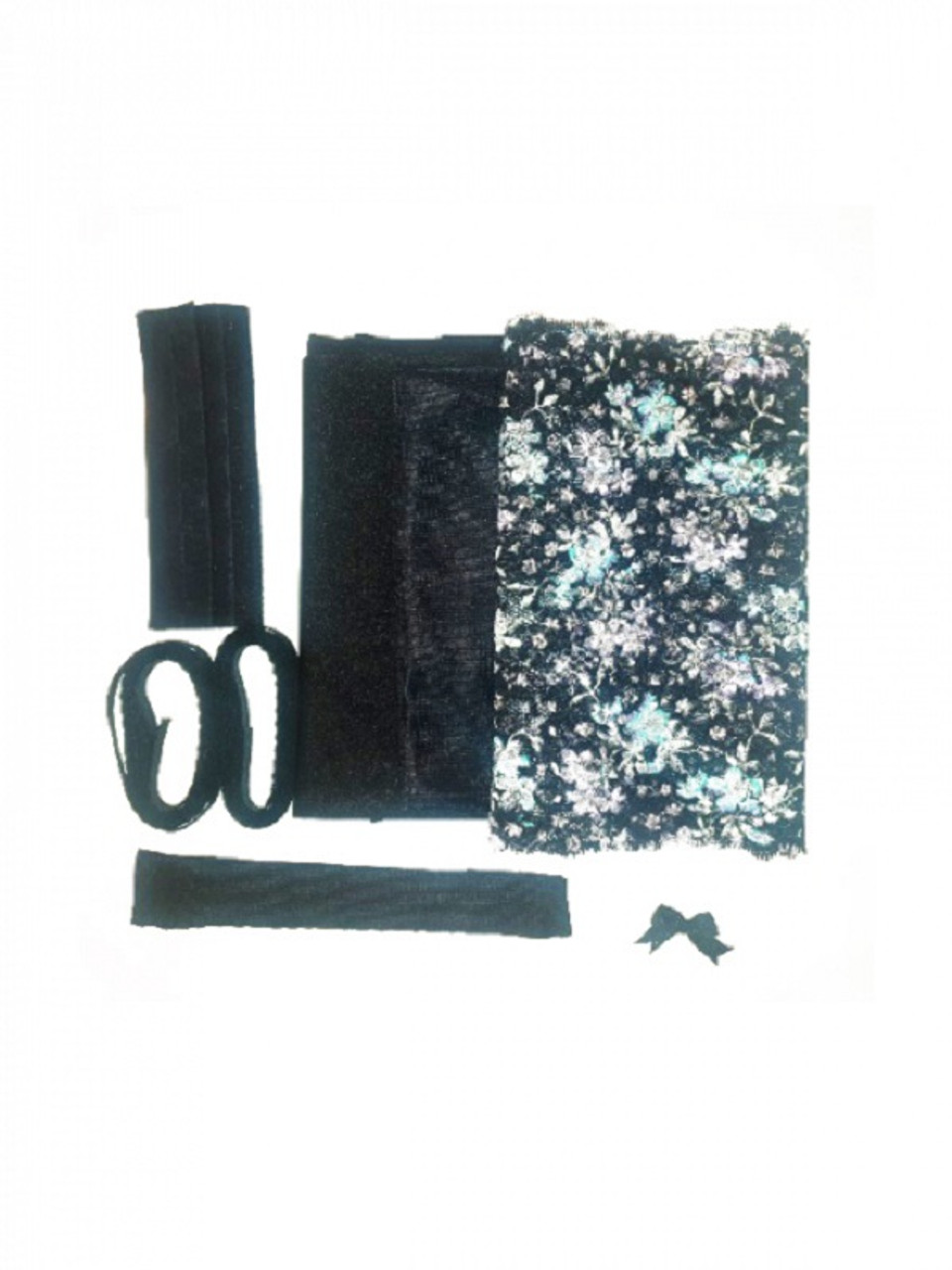 Your kit will contain cup fabrics, lining fabrics, elastics, centre front stanbiliser, hook and eye tape and a motif.