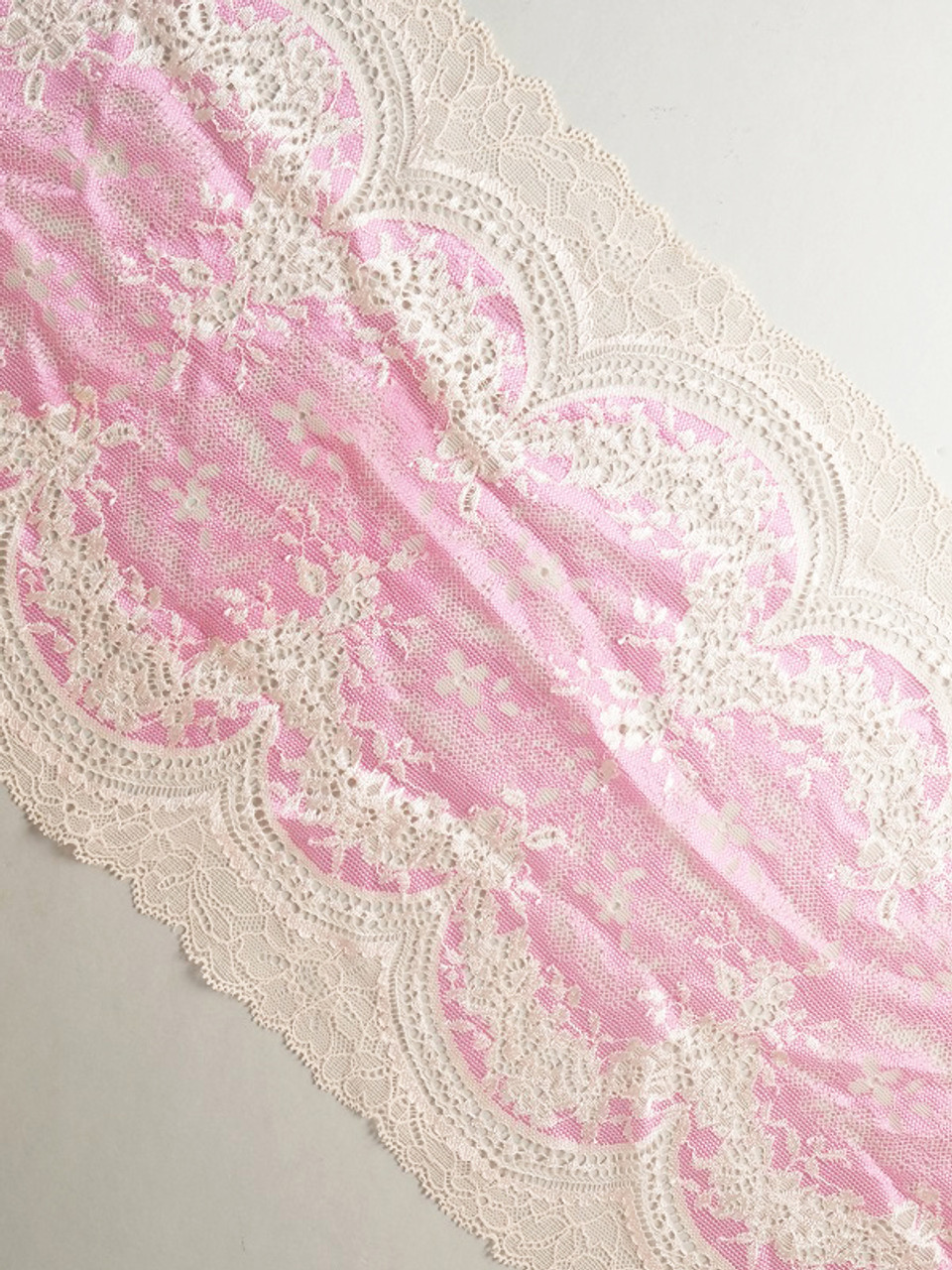 This bilateral lace has a pretty design and is a lovely firm stretch. Laces are sold by the metre unless stated otherwise. Kindly note that the laces have joins throughout the rolls, so if ordering larger quantites, you may have a join/s. Laces are non returnable as they are specifically cut for your order.