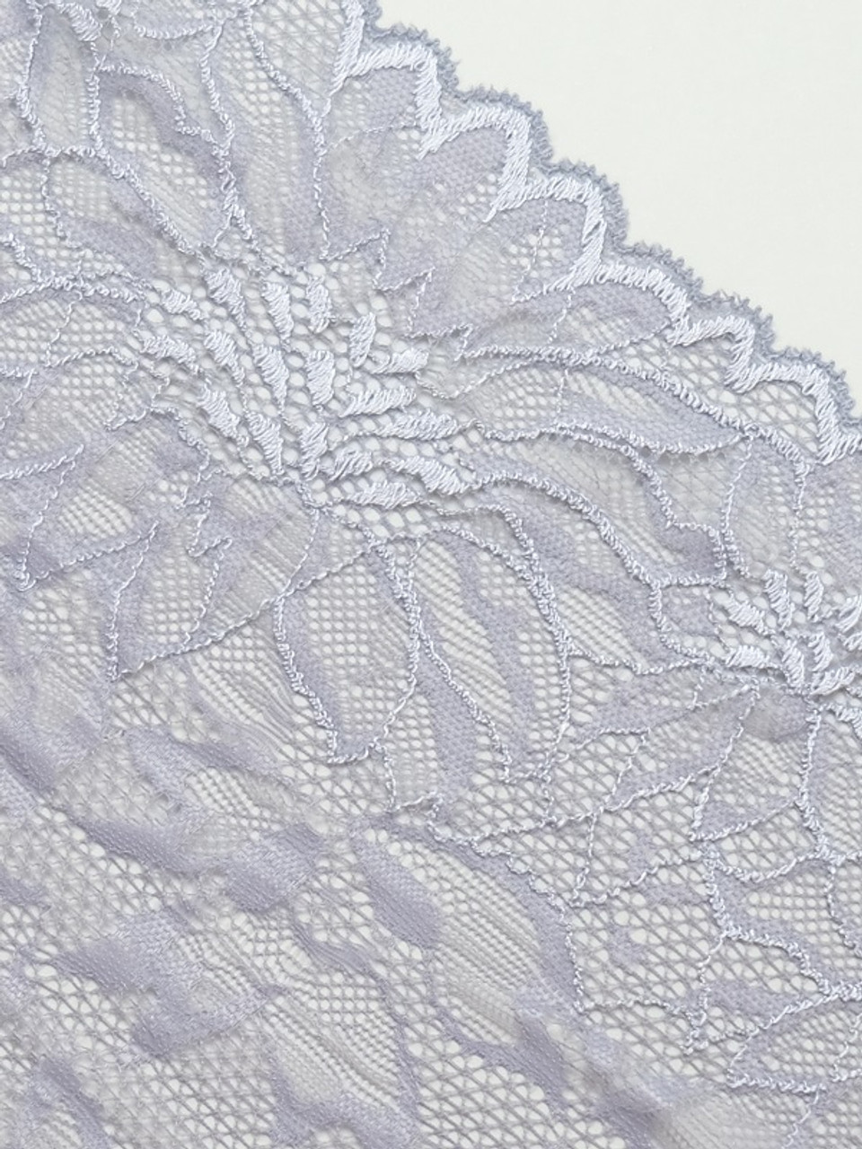 This lace is a light-medium stretch lace in a pretty light grey floral lace design with bilateral edges. It is nice and wide and is suitable for most patterns due to its width. Laces are sold by the metre unless stated otherwise. Kindly note that the laces have joins throughout the rolls, so if ordering larger quantites, you may have a join/s. Laces are non returnable as they are specifically cut for your order.