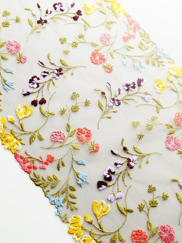This lace is a stunning embroidered colourful non-stretch lace, perfect for bra, lingerie and camisole making. Laces are sold by the metre unless stated otherwise. Kindly note that the laces have joins throughout the rolls, so if ordering larger quantites, you may have a join/s. Laces are non returnable as they are specifically cut for your order.