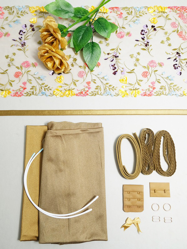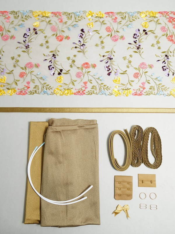 The lace provided is for the upper cups and centre front, so if you would like to make an all lace option, simply add more lace to your order using the dropdown menu. You can customise the kit to suit your taste. Powernet and cotton lining colours are limited, but cup fabric and add kits can be colour changed. Roses are for display purposes only.