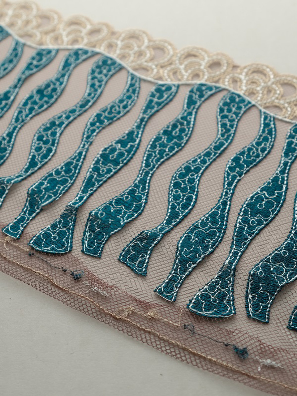 This non stretch lace has an incredibly unique embroidered lace pattern. Laces are sold by the metre unless stated otherwise. Kindly note that the laces have joins throughout the rolls, so if ordering larger quantites, you may have a join/s. Laces are non returnable as they are specifically cut for your order.