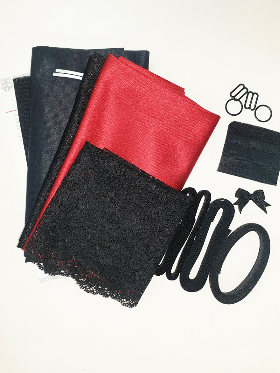 These kits are designed for use with Booby Traps BOO3, BOO2, Claudia, Vanessa, Baroque and Balconette bra patterns. Everything you need to make your own bra is included. The lace provided is for the upper cups and centre front. If desiring a wider band elastic etc you can purchase them separately here. The price will change with add-ons and also some customisations.