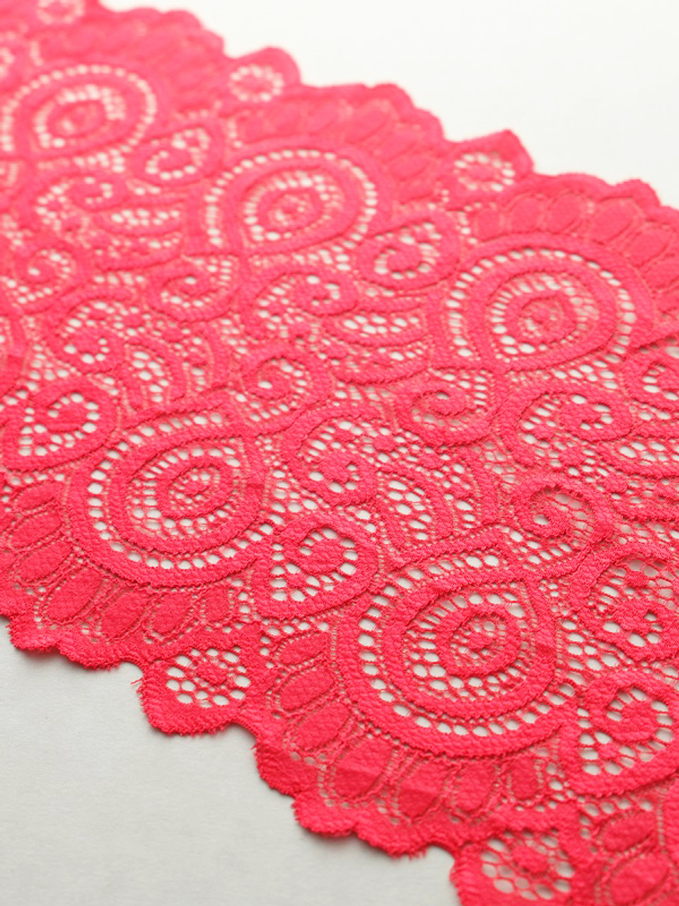 This lace is a firm stretch elegant lace available in many colours. Laces are sold by the metre unless stated otherwise. Kindly note that the laces have joins throughout the rolls, so if ordering larger quantites, you may have a join/s. Laces are non returnable as they are specifically cut for your order.