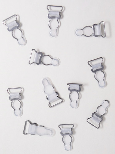 These suspender clips are made to oeko standards and are of high quality. Opening indicates the internal space where strap elastic or fabric is inserted. Sold individually and available in different colour combinations.