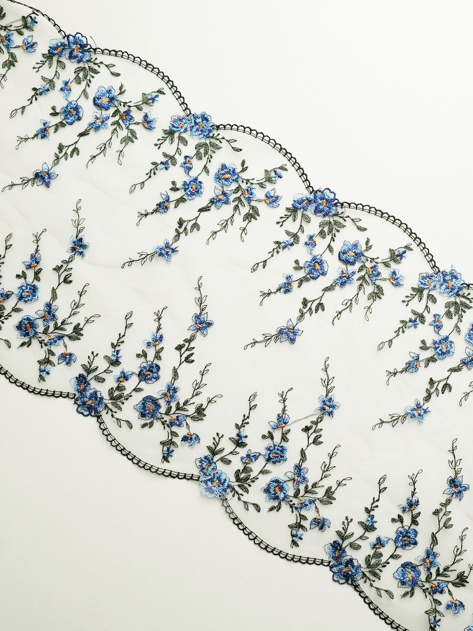 This embroidered lace is refined and elegant, its absoltely stunning. The embroidery is delicate and intricate. This lace is very sheer in between the embroidered sections, making it elegant and refined. It is a supportive option, perfect for bra, lingerie and camisole making. Laces are sold by the metre unless stated otherwise. Kindly note that the laces have joins throughout the rolls, so if ordering larger quantites, you may have a join/s. Laces are non returnable as they are specifically cut for your order.