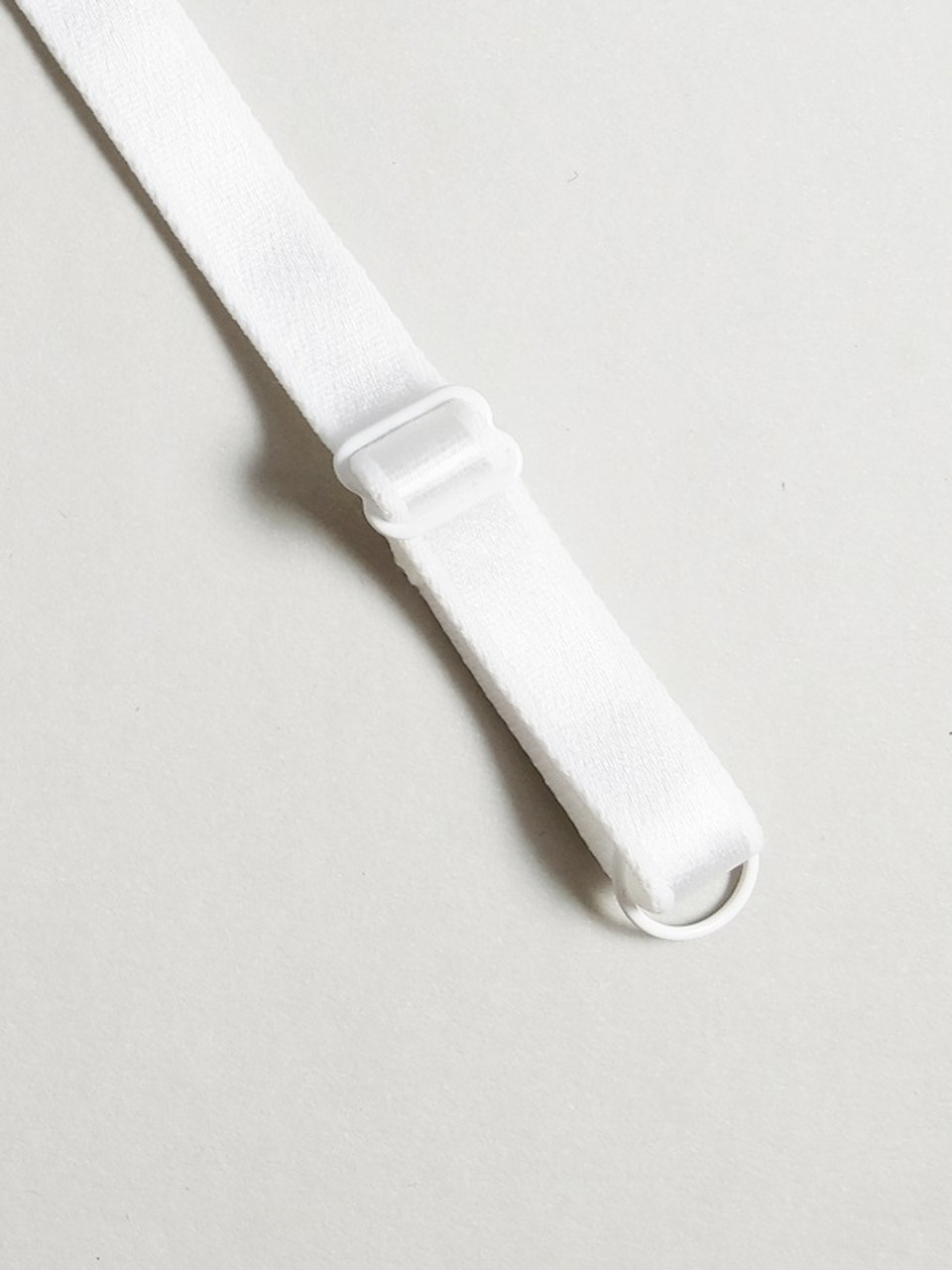 The ring finish can be stitched directly onto clothing by cutting a small piece of strapping at the raw end and fastening it through the ring. Then stitch this to the back of the garment and stitch the other side down to the front.