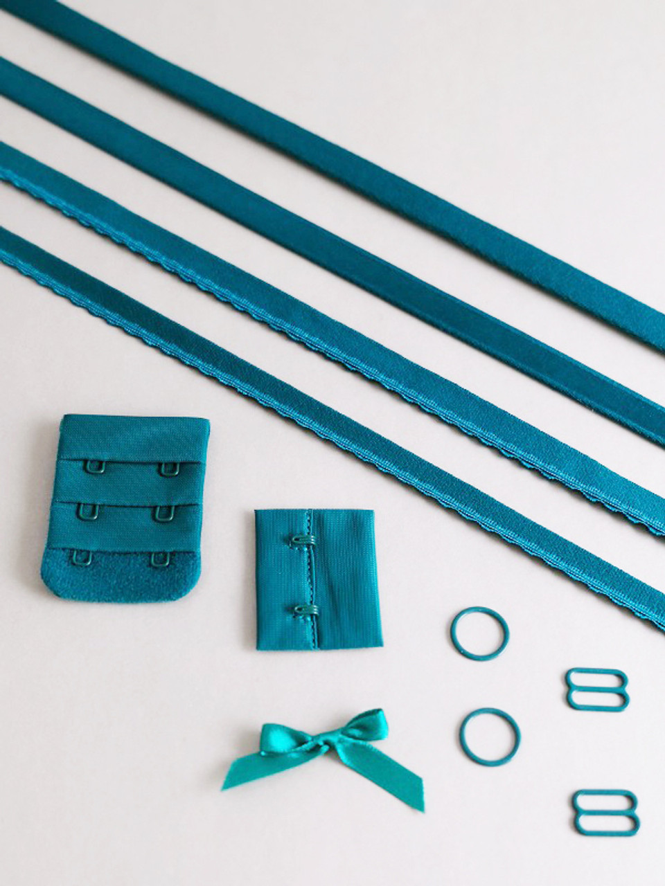 You will receive a packaged kit with the following: bra strap elastic, facing elastics, hook & eye tab, 2 rings, 2 slides, 1 bow and underwire casing. Elastic, tabs and hardware widths and sizes are as directed by Cashermette for the Willowdale bra pattern. So simply enter your bra size, and we can prepare the add kit according to the Willowdale requirements.